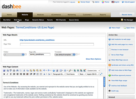 With site wide templates, you keep the professional design you pay for, on every page you create or edit. Think of it as a photo frame wrapping around the content you create, keeping the professional look and feel on every page.